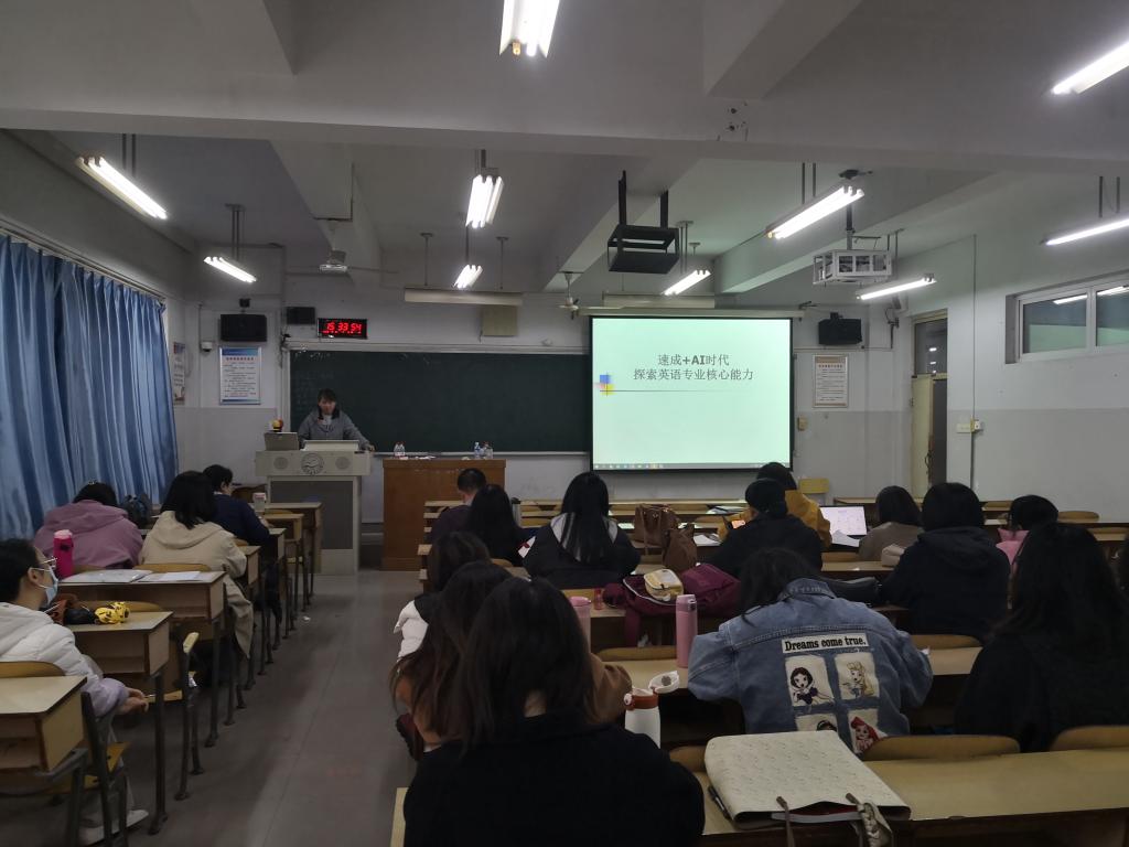 为提升教师数字化教学能力与课程思政育人水平,2025 年10月30日下午,外国语学院组织全体专任教师开展专项培训活动。此次活动由崔海英院长主持,邀请在暑期参加高校外语教学研究与教师发展系列研修班的韩庆山、纪亚品、张杨三位老师围绕大语言模型应用、《理解当代中国》教材使用、AI 时代英语专业核心能力培养三大主题进行分享,为教师们带来了一场兼具前沿性与实用性的知识盛宴。