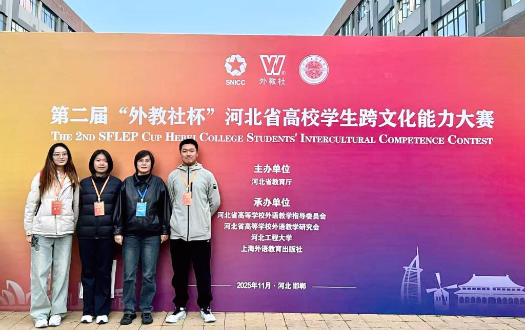 2025年11月14-16日,河北省高等学校“外教社杯”跨文化能力大赛在河北工程大学如期举行。这场覆盖全省多所高校、汇聚外语精英与跨文化人才的巅峰对决,以其高规格赛事标准、高强度竞技节奏,成为检验高校外语教学实力、学子综合素养与跨文化交流能力的核心舞台。在赛场上,我校参赛学子沉着应战、从容不迫,凭借过硬的专业功底、默契的团队协作与卓越的临场应变,以及跨文化大赛专属的国际视野展现、跨文明对话技巧的多重竞技维度中脱颖而出,充分彰显了扎实的语言功底与开阔的全球视野。