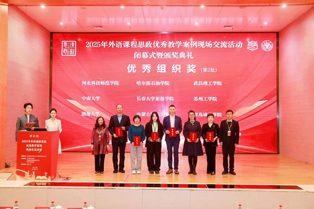 近日,2025年高等学校外语课程思政优秀教学案例现场交流活动在山城重庆圆满落幕。河北科技师范学院外国语学院孙秋月团队派出于开拓老师参与最后的角逐,她们凭借扎实的教学功底与创新的思政设计,斩获英语专业组二等奖;同时,学校因组织得力、参与积极,成为河北省唯一获得“优秀组织奖”的院校,双线告捷彰显了我校外语课程思政建设的显著成效。
