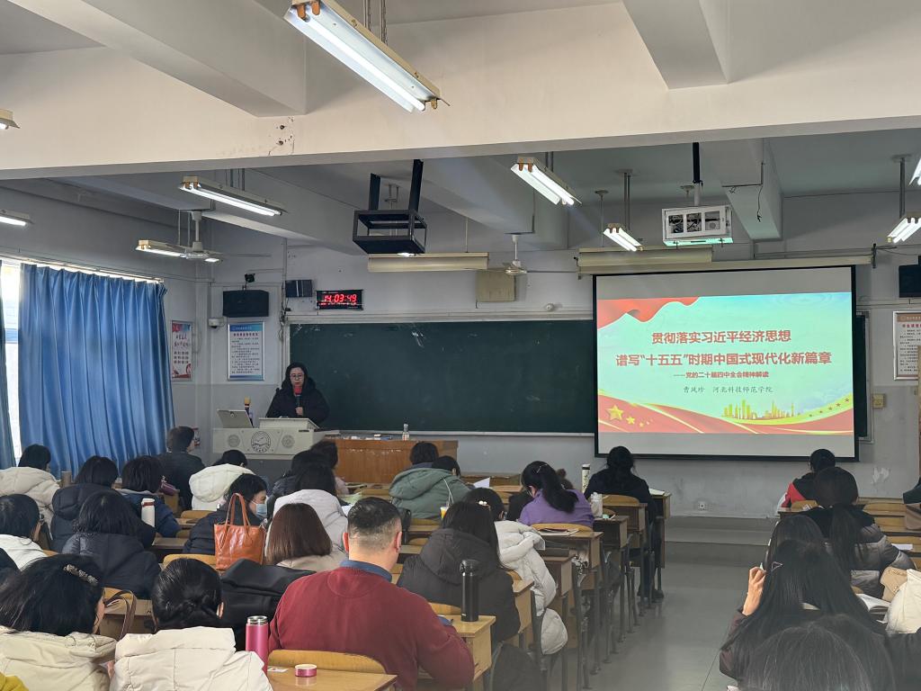 为深入学习贯彻党的二十届四中全会精神,精准把握“十五五”规划核心要义,12月25日下午,外国语学院特邀马克思主义学院曹凤珍博士,为全体教师作“贯彻落实习近平经济思想,谱写‘十五五’时期中国式现代化新篇章”专题宣讲。