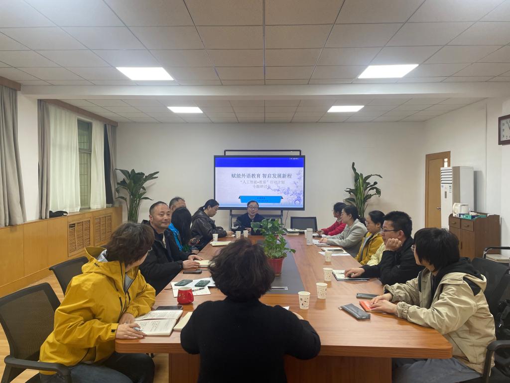为深入贯彻落实国家《“人工智能+教育”行动计划》部署要求,主动顺应教育数字化转型趋势,推动人工智能技术与外语教学、科研及人才培养深度融合,4月16日,外国语学院在五楼会议室召开专题研讨会,集中学习相关行动计划精神,并结合学院专业特色与课程特点,研究部署具体落实举措。学院领导班子全体成员、教学部主任、教务处主任、各专业负责人及各系部骨干教师代表参加会议,会议由副院长王静主持。