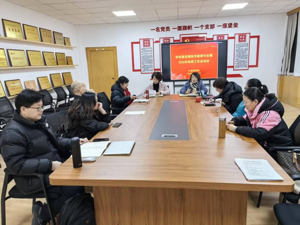 2026年1月4日,外国语学院组织学科建设规划专家研讨会暨2026年科研工作启动会,学院领导及学院全体教授、具有博士学位的骨干教师参会。会议全面总结学院学科建设和科研工作现状,明确未来发展方向,为学科高质量发展凝聚共识、汇聚力量。
